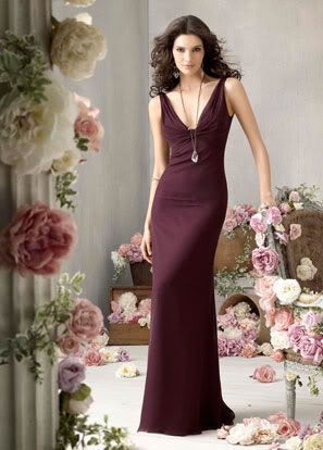 As old as I am, I've never been in a non-family wedding so I'm pretty excited. There are three of us...maid of honor and two bridesmaids. I'm a bridesmaid and the bride is fantastic. She gave us the designer's name (Jim Hjelm) and the color and told us to pick the dresses we wanted and she's paying for them. Sooooooo nice. The wedding is in CA and I'm coming from Buffalo and another friend is coming in from Vancouver, BC so we're paying for airfare and stuff though. In any event, here are the three dress we all chose. They're all in eggplant...which turns out to be a very deep purple color and the backs of the dresses are very similar so from behind we'll all look similar.